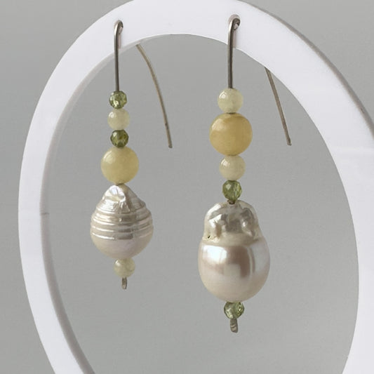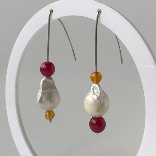 Sacral Chakra Healing Crystal & Sterling Silver earrings with Baroque Pearls