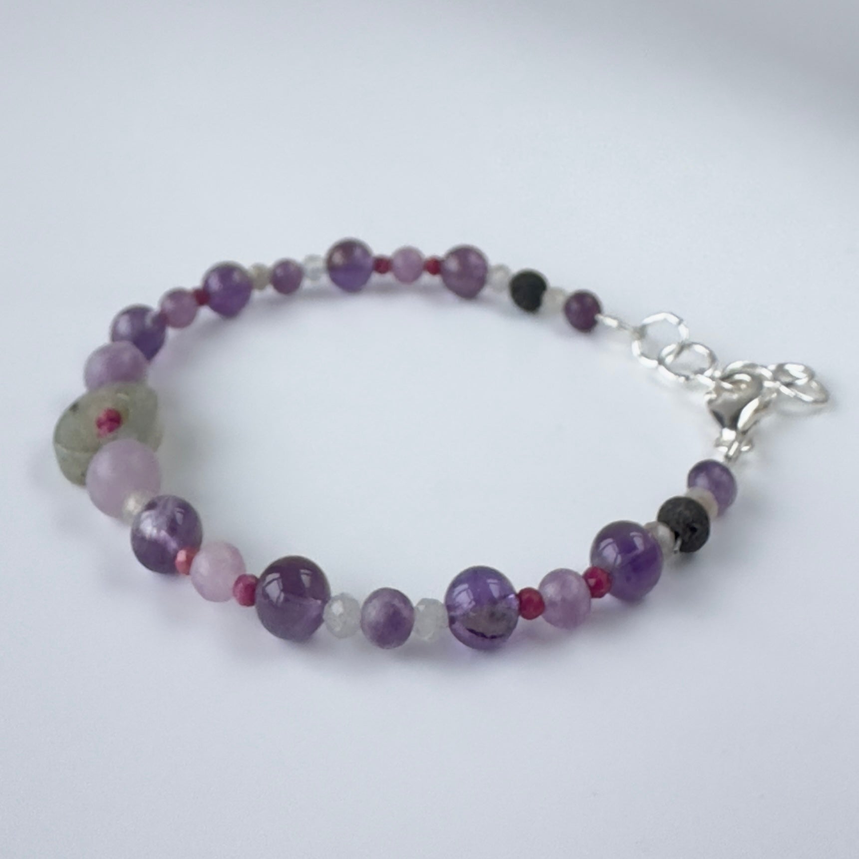 Each piece is lovingly assembled, combining stones selected for their complementary healing properties. To enhance their natural energies, the crystals are cleansed with Palo Santo and charged using Selenite.