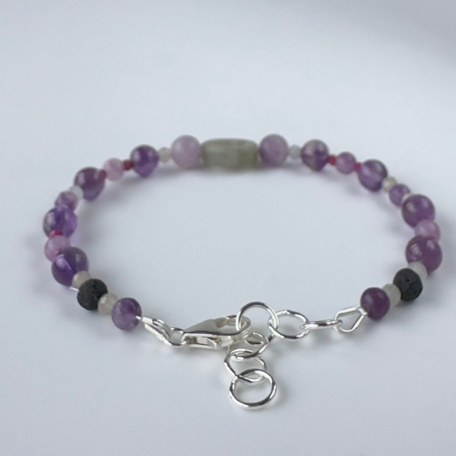 Healing Crystal & Sterling Silver Third Eye Chakra bracelet with aromatherapy beads