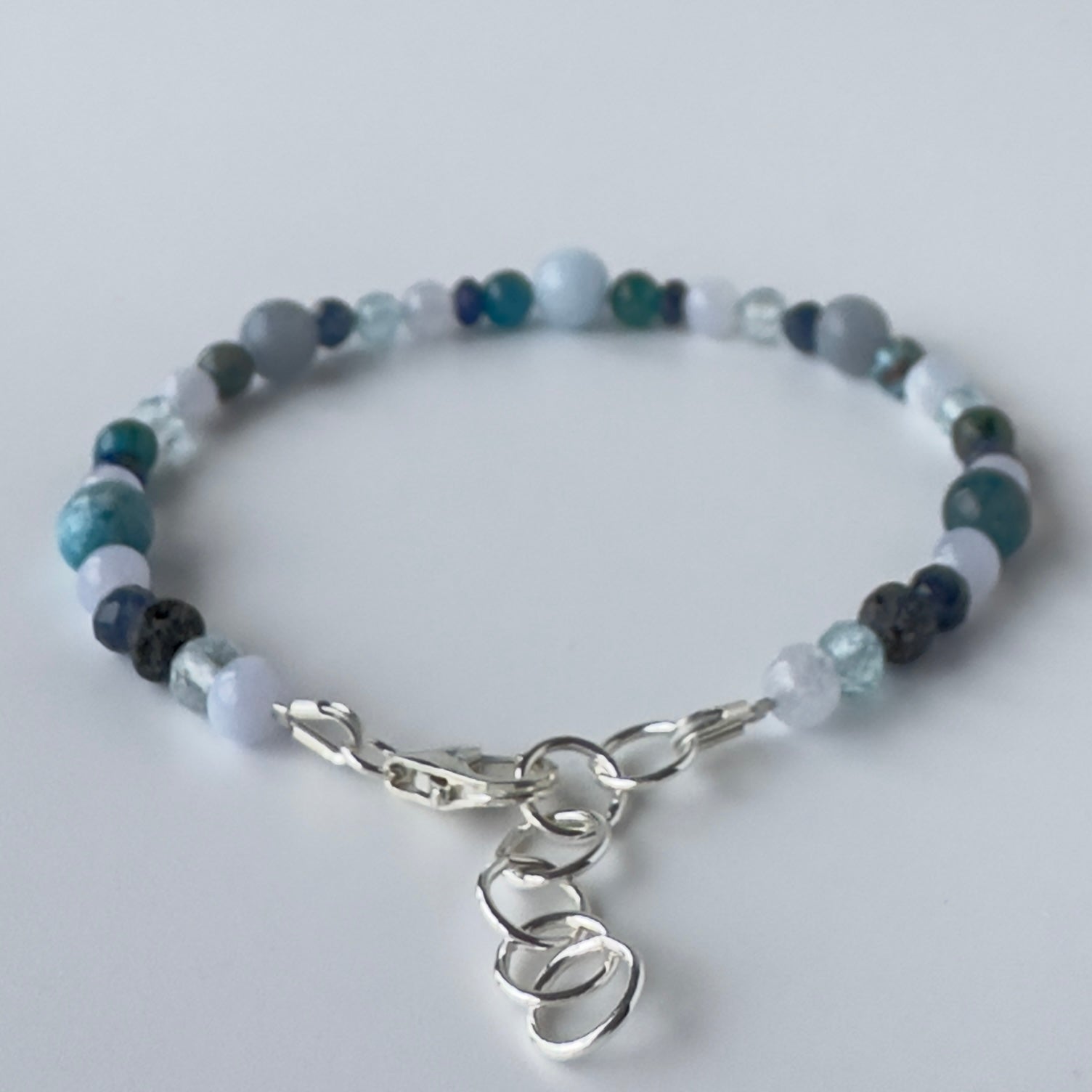 Healing Crystal & Sterling Silver Throat Chakra bracelet with aromatherapy beaads